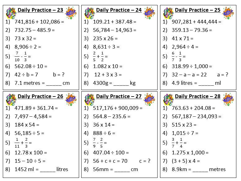 Use the questions below to practise your speed and accuracy of basic arithmetic methods.