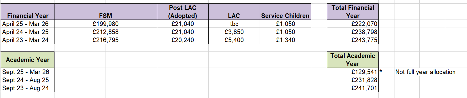 | Looked After Children (LAC) | £2,630 |
